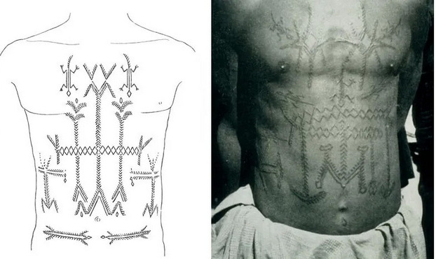 At the same time, according to Makonde tattooing custom, tattoos around the navel and pubic area may be related to an ancient pre-magical tradition aimed at preventing the penetration or possession by evil forces of those human body parts that are more vulnerable (e.g., the natural orifices of the body).